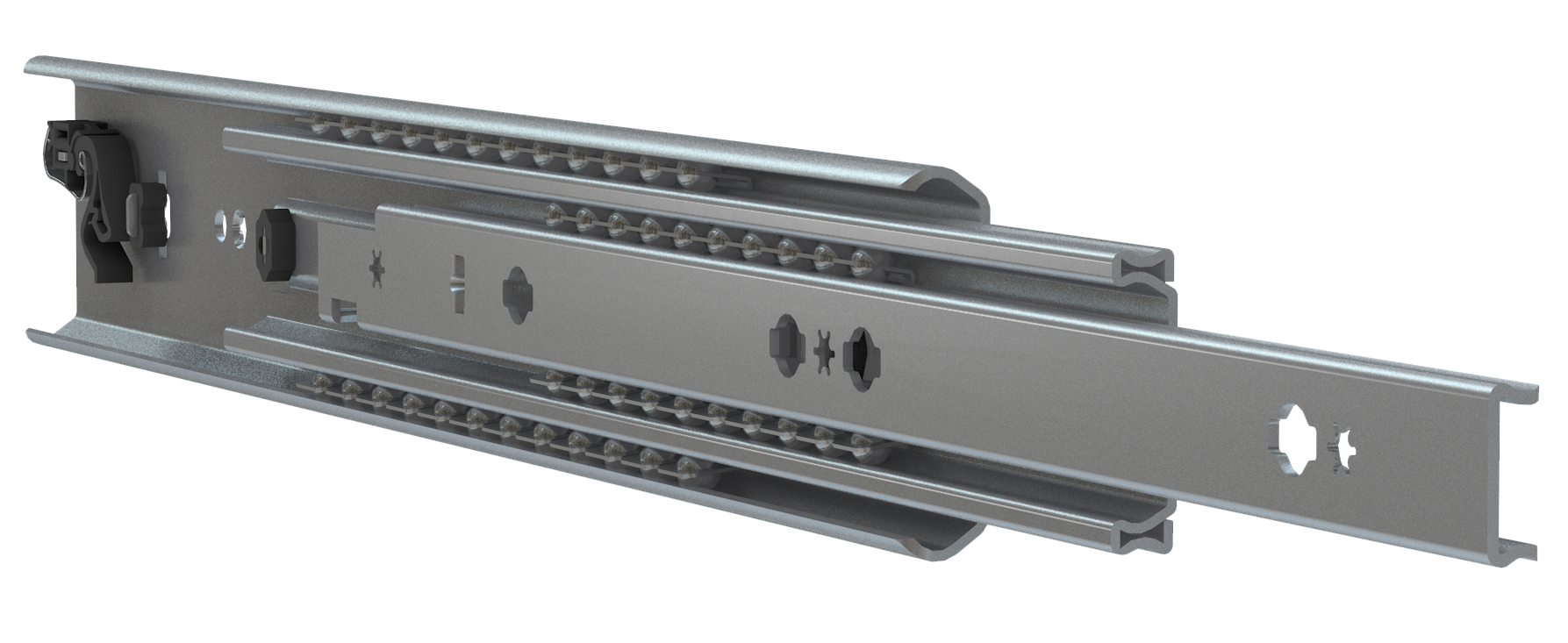 Senklöcher sind spezielle Löcher, die es Befestigungselementen wie Senkkopf-Schrauben ermöglichen, flach mit oder unter der Oberfläche der Teleskopschiene zu bleiben. Die Senklöcher werden verwendet, um den Kontakt zwischen Schrauben und den beweglichen Teilen innerhalb unserer Teleskopschienen zu verhindern.