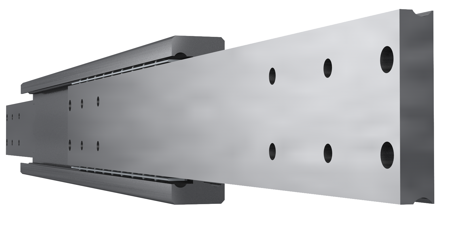 Guida in acciaio inox a profilo pieno con design a doppia T, ideale per applicazioni nella costruzione di macchinari, industria, settore ferroviario, veicoli speciali, automotive e macchine industriali. Questa guida con design a doppia T ha una capacità di carico massima di 735 kg (1620,4 lbs).
