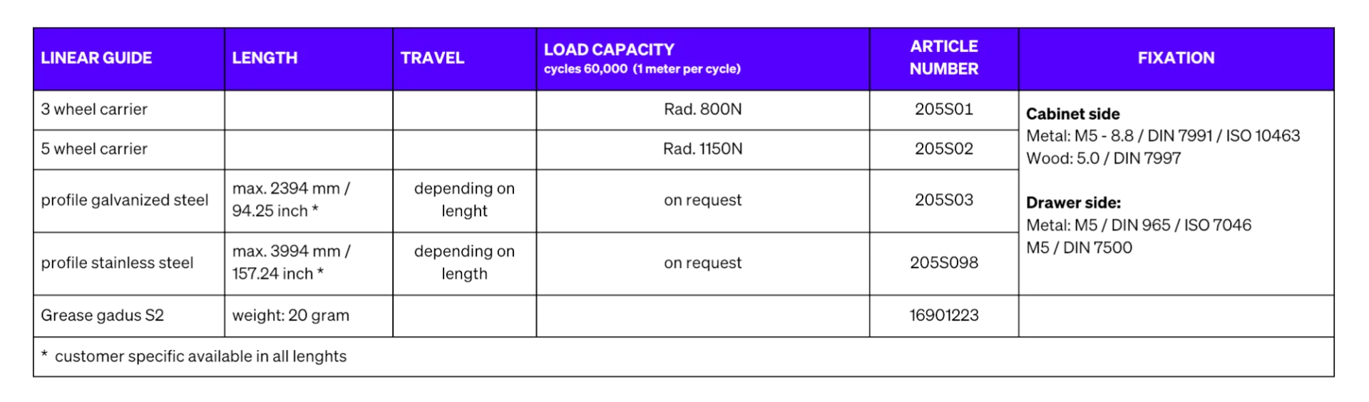 Linear guiding system that makes it possible to move an application horizontally, vertically or diaginal. The linear guide consists of a 3 or 5 wheel carrier and a Finn profile. Typical applications for the FlexFit are vending machines and sliding doors. Also available as TR-1529.